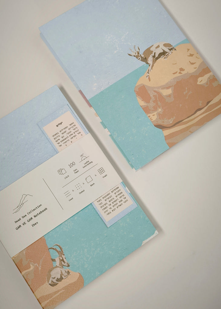 מחברת בגודל A5, מסדרת מוצרי 'סיפורי ארץ' המאוירת בדוגמאות, מרקמים ונופים מהטבע המדברי של הנגב וים המלח.