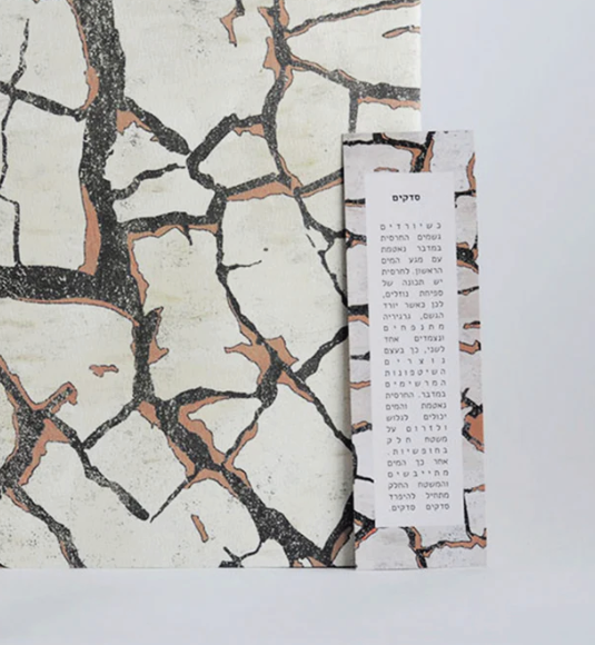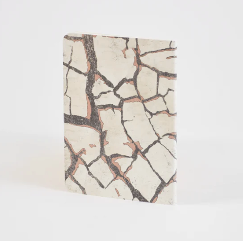 מחברת תפורה בגודל A5, מסדרת מוצרי 'סיפורי ארץ' המאוירת בדוגמאות מרקמים ונופים מהטבע המדברי של הנגב וים המלח.